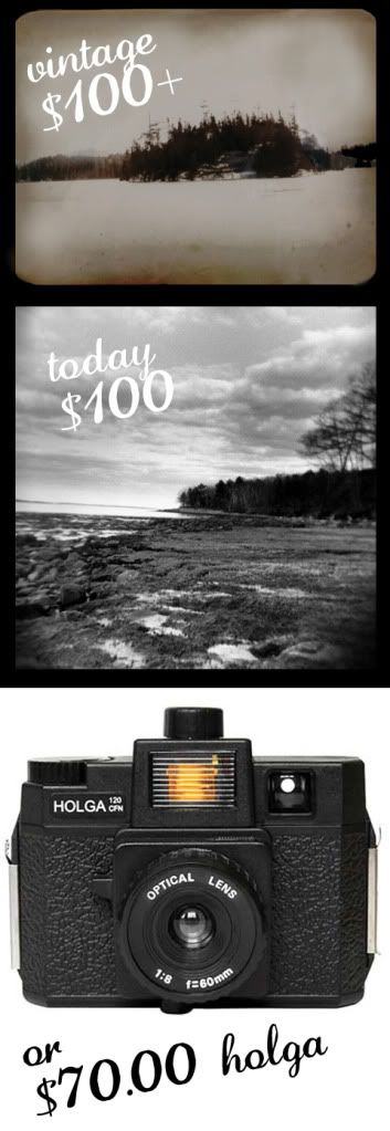 While I was strollin’ around the barn I noticed a lot of the clutter looked oddly familiar. Hey, that’s like my L.L BEAN ALARM CLOCK! Seems every "vintage beauty" has a modern counterpart - refurbishing gone mainstream. ha! Clearly my habitual attempt to make another person's trash my treasure and veer from consumer America, is an easier task than previously thought. Still, I recommend the Holga, Ork! and Bean as beautiful alternatives to the "real thing" (see below!).